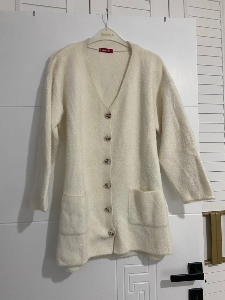 Düğmeli Beyaz Uzun Kollu Kadın Hırka