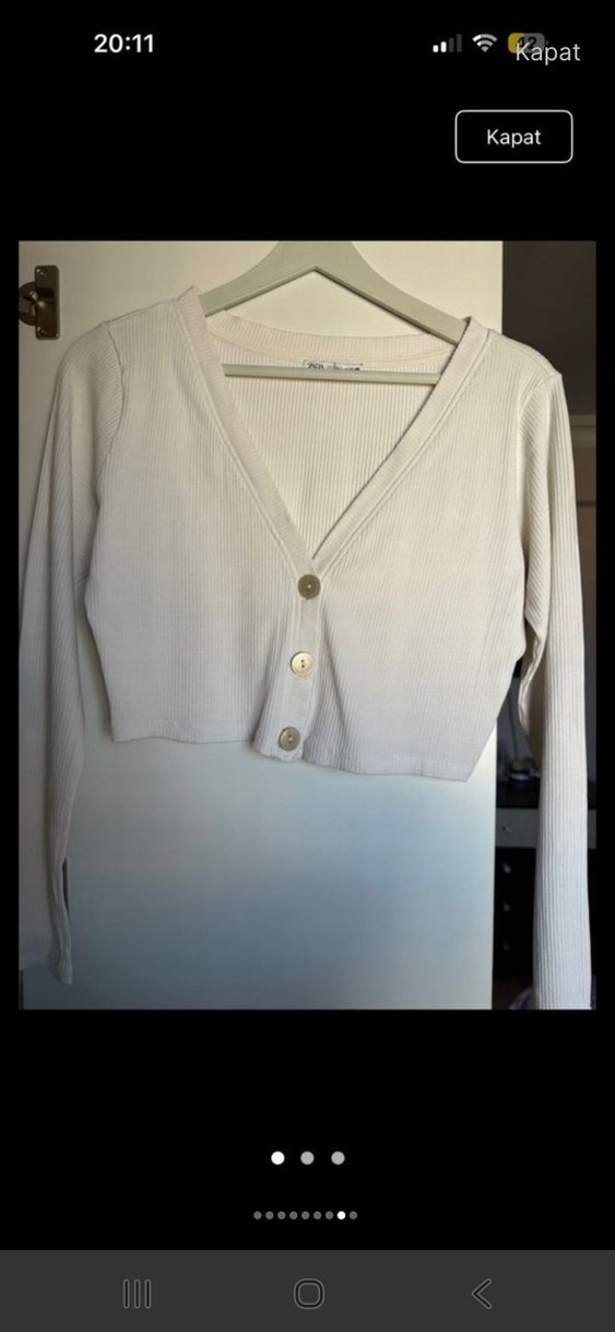 Pamuk kumaştan, düğmeli, V yaka ve uzun kollu beyaz, fitted kesim kadın hırka. Minimalist ve gündelik sokak stili için uygun.