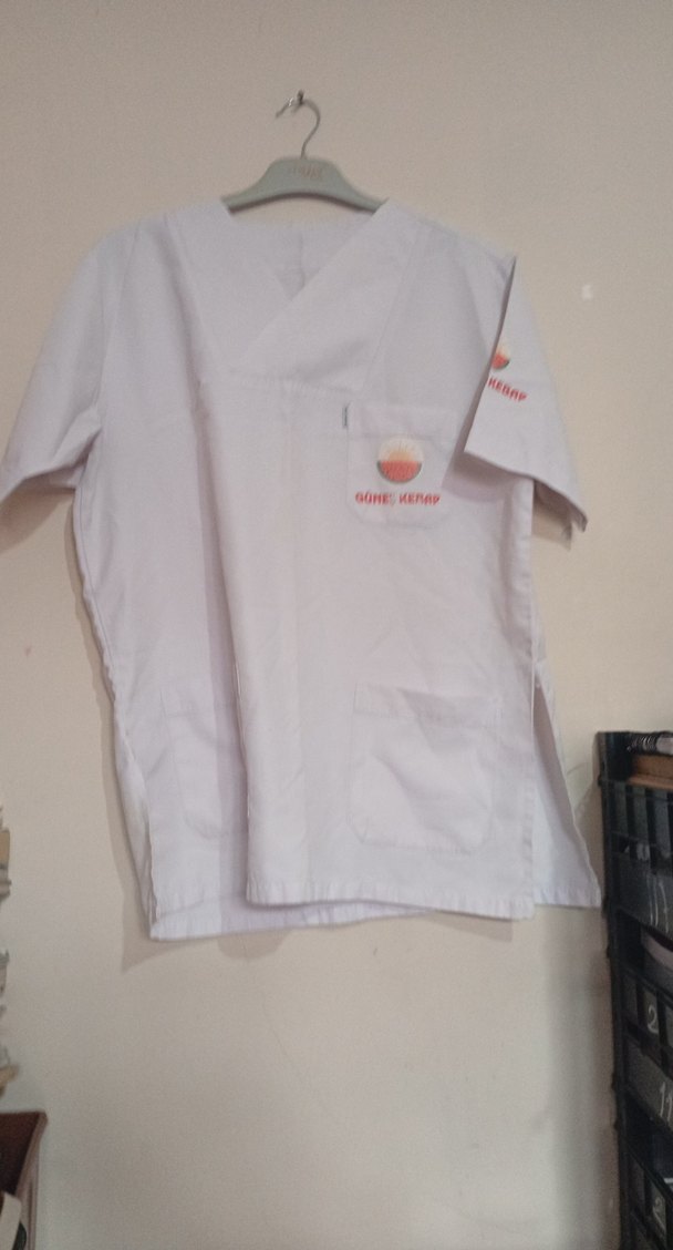 Kısa kollu, V yakalı ve düğmeli beyaz erkek gömleği. Sentetik kumaştan, rahat kesim ve günlük kullanım için uygundur. Basit baskılı tasarıma sahiptir.