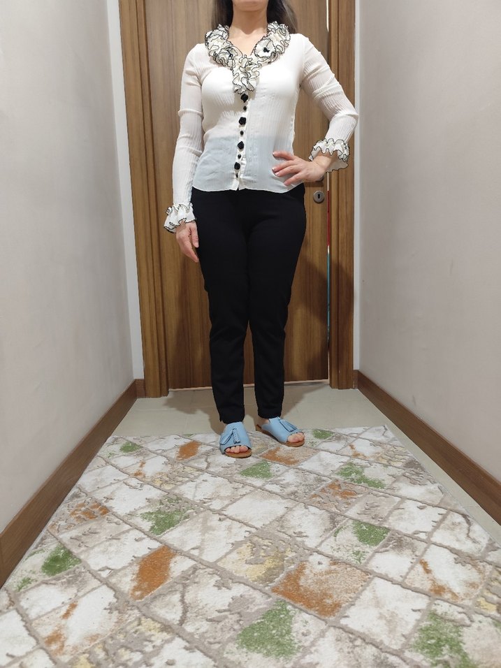Düğmeli Beyaz V Yaka şık orjinal Bluz