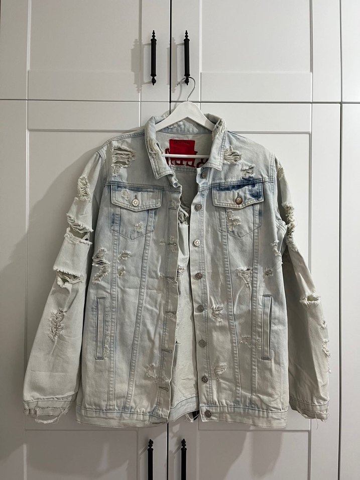Düğmeli Beyaz Yırtık Denim Ceket