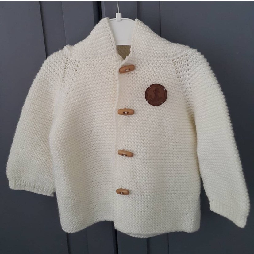 Düğmeli Bohem Beyaz Bebek Hırkası istenilen renklerde örülür