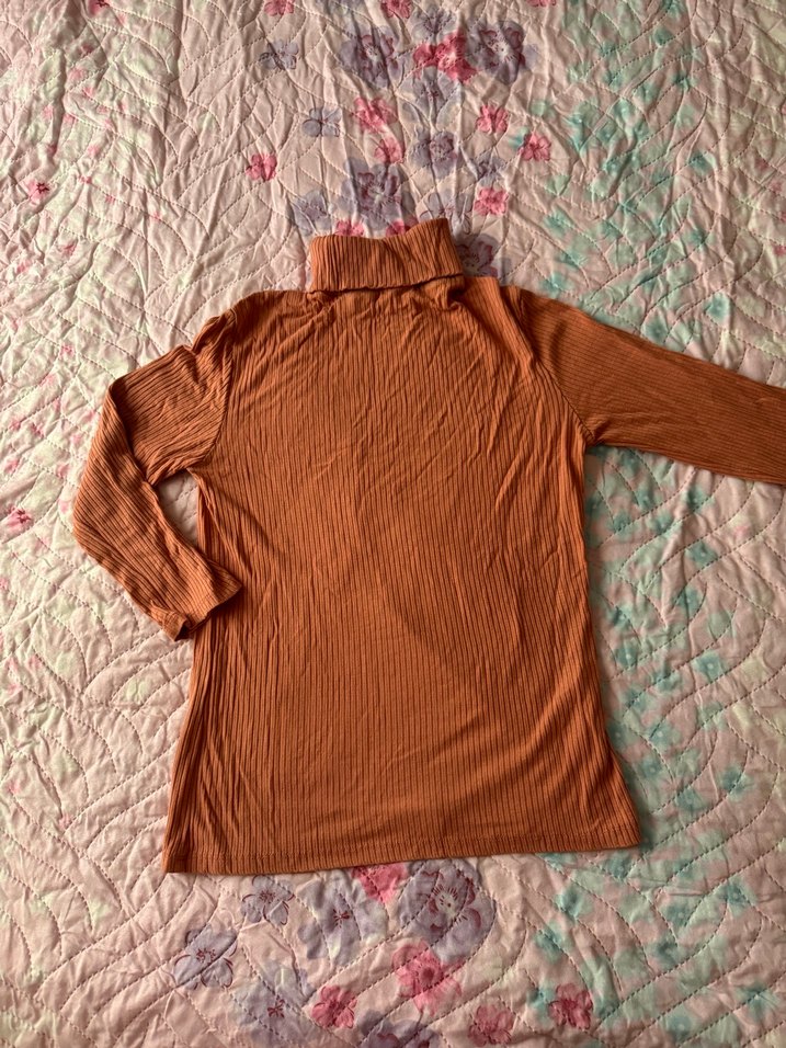 Kahverengi, düğmeli, balıkçı yaka ve uzun kollu kadın kazak. Yumuşak keten kumaştan, bohem tarzı için uygun.