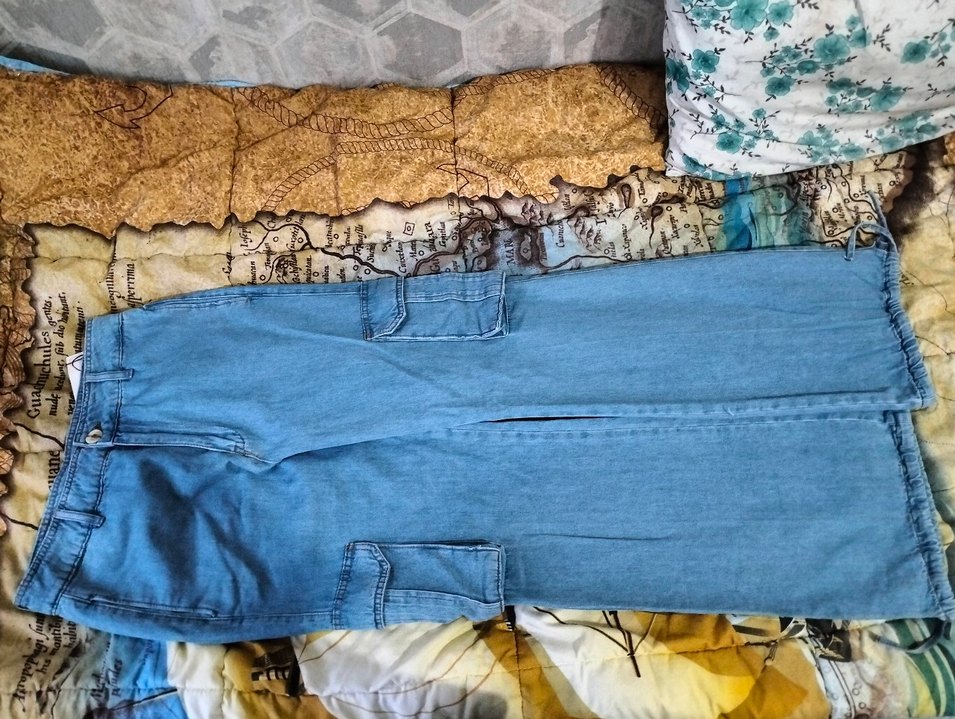 Düğmeli detaylara sahip, mavi renkli bol kesim midi denim pantolon. Bohem tarzda, gündelik kullanım için uygundur. Desensiz ve rahat tasarım. hiç kullanılmamıştır bedeni olmadığı için satılmaktadır