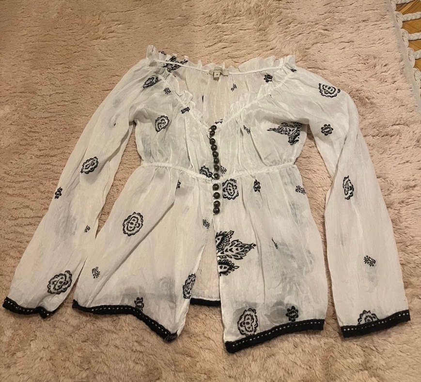 Düğmeli Bohem Nakışlı Kadın Bluz