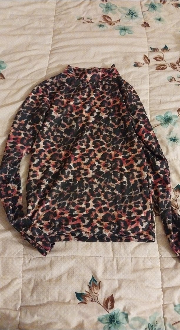 Düğmeli, balıkçı yaka ve uzun kollu, koyu renkli tie-dye desenli sentetik kumaştan yapılmış, bohem tarzda, günlük kullanıma uygun dar kesim bluz.