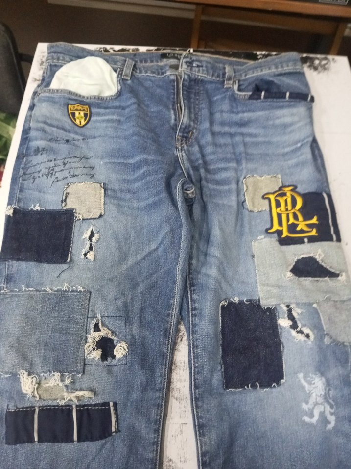 Düğmeli, bol kesim kot pantolon, yama detayları ve koyu mavi renkte. Günlük sokak stili için uygun. ölçüleri fotoğraflarda var