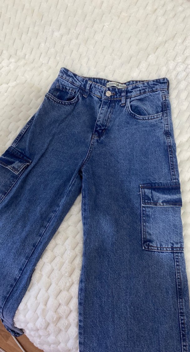 Düğmeli Bol Kesim Kadın Kot Pantolon