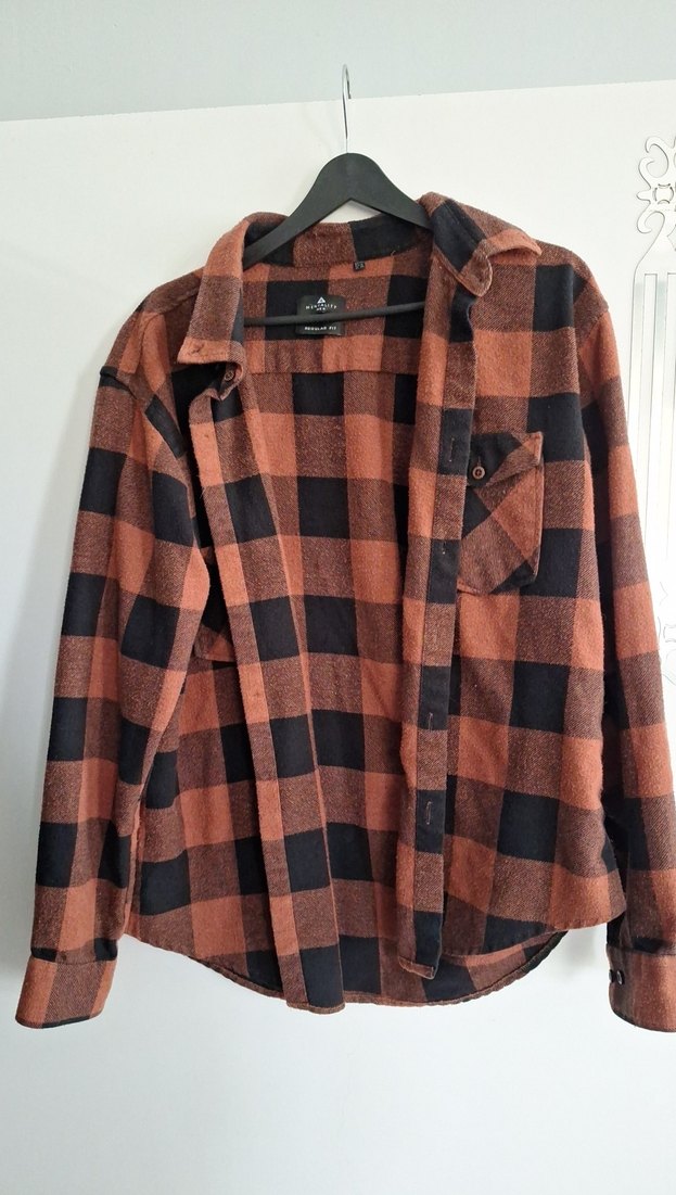 Uzun kollu, düğmeli ve bol kesim kahverengi oduncu gömlek. Yumuşak ve sıcak dokusu ile rahat sokak stili için ideal. Erkek reyonundan alındı. Severek kullandım, fazla olduğu için satıyorum. üzerinde pamuklanmalar mevcut foroğrafta gösterdim.