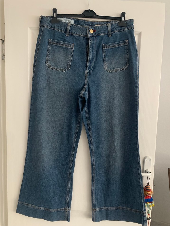 Parlak mavi renkte, düğmeli ve bol kesim kot pantolon. Rahat ve bohem tarzıyla günlük kullanıma uygundur. Tüm detaylar fotoğraflarda mevcut. İade kabul etmiyorum
