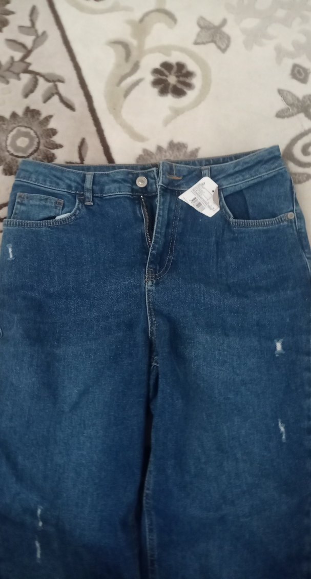 Düğmeli ve bol kesim özellikli, midi uzunlukta mavi kot kadın pantolon, günlük sokak stili için uygundur.