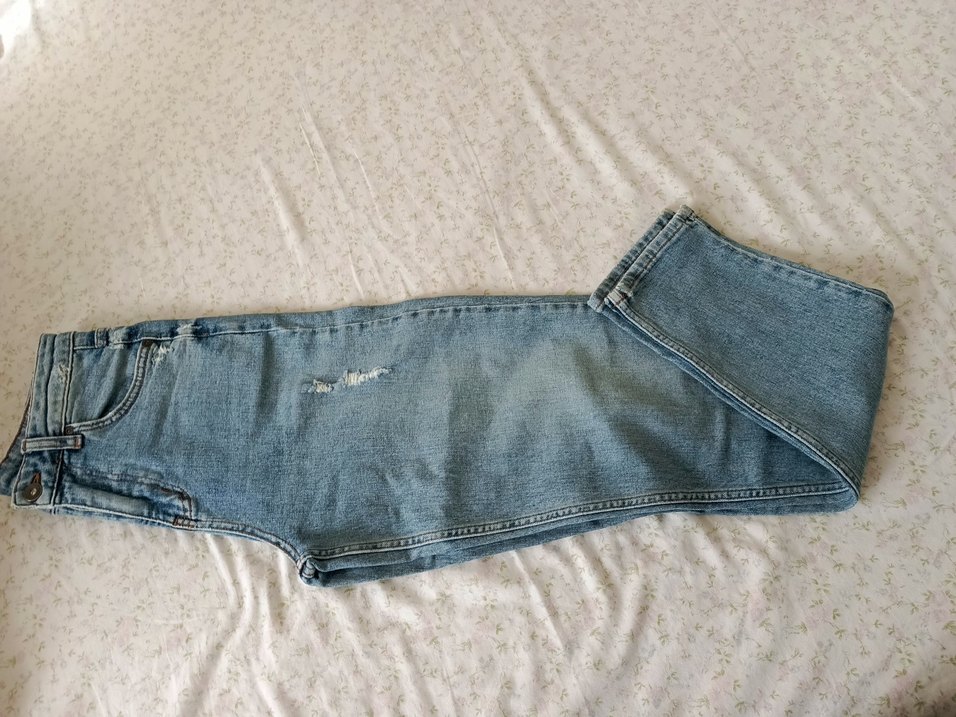 Mavi renkte düğmeli, bol kesim midi uzunluğunda kot pantolon. Rahat ve gündelik kullanım için uygundur.