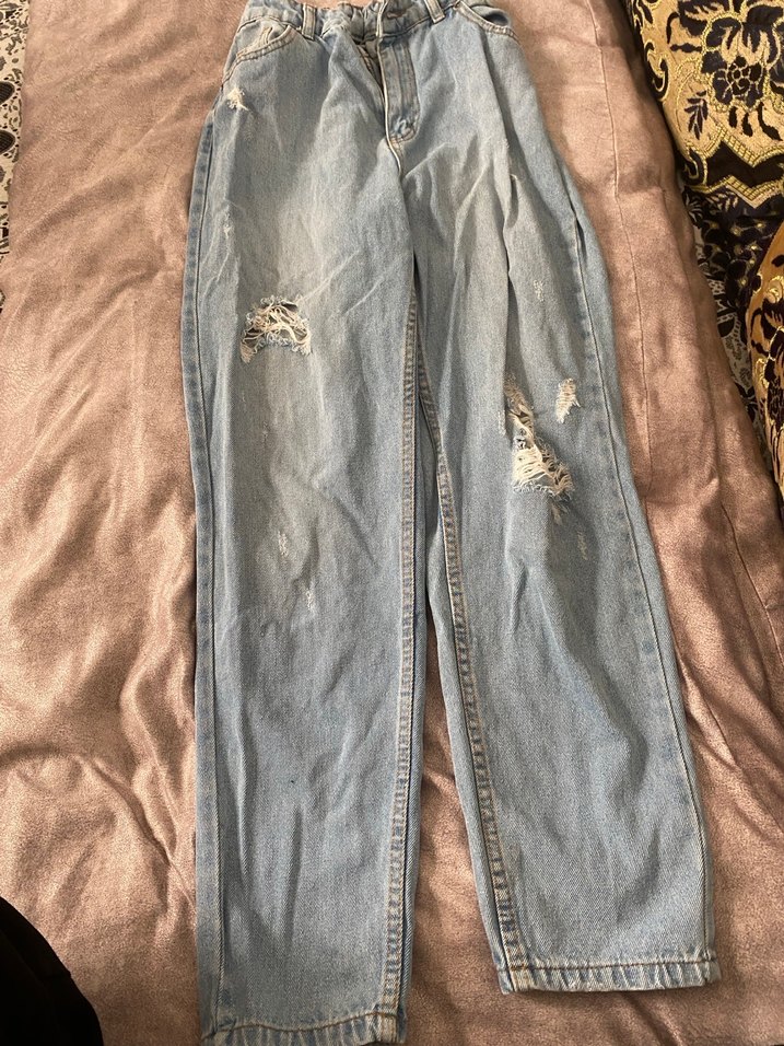 Düğmeli, bol kesim midi uzunlukta kot pantolon. Rahat ve günlük kullanım için uygun, kot kumaştan, yırtık detaylı.
