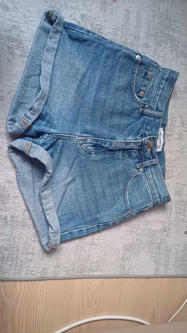 Düğmeli ve katlamalı kenar detaylı bol kesim mini denim şort, günlük ve sokak stiline uygun klasik mavi renkte.kilo aldığım için olmuyo artık hiçbir problemi defosu yoktur