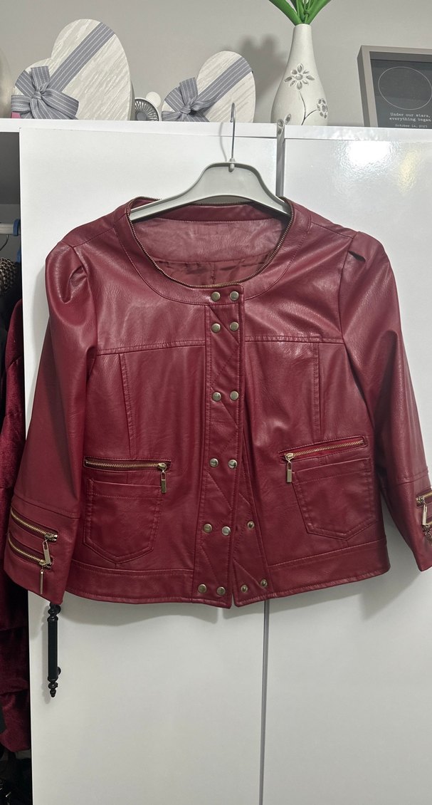 Düğmeli Bordo Deri Kadın Ceket
