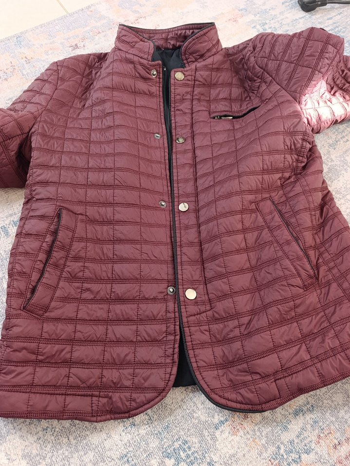 Düğmeli, çıtçıtlı, parlak bordo renkte erkek mont. Sentetik kumaştan, normal boy, regular fit ve uzun kollu. Günlük rahat kullanıma uygun.