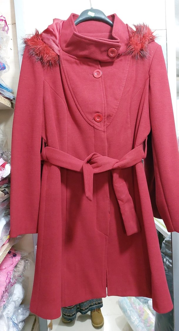 Düğmeli, uzun kollu ve kruvaze yakalı bordo kaban. rahat, yumuşak kumaştan üretilmiştir. Midi boyda, günlük kullanıma uygun. gi