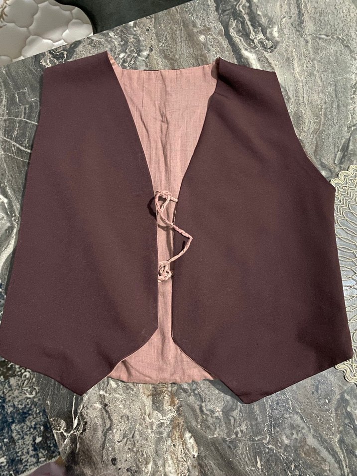 Özel dikim terziye diktirildi. Önden bağlamalı. Rengi bordo kahverengi. Göğüs 45 cm , boy okuzdan etek ucuna mn kısmı en uzun şekilde 50 cm , arka boy 45 cm.