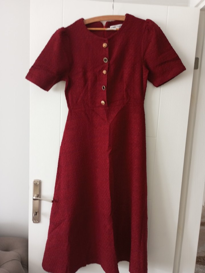 Düğmeli Bordo Midi Elbise yeni elbise hiç kullanılmadı