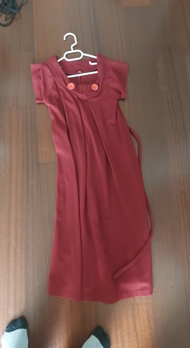 Bordo renkli, düğmeli, v yaka, kolsuz ve midi boy hamile elbisesi. Rahat kesimi ve ipeksi dokusuyla günlük kullanıma uygundur.