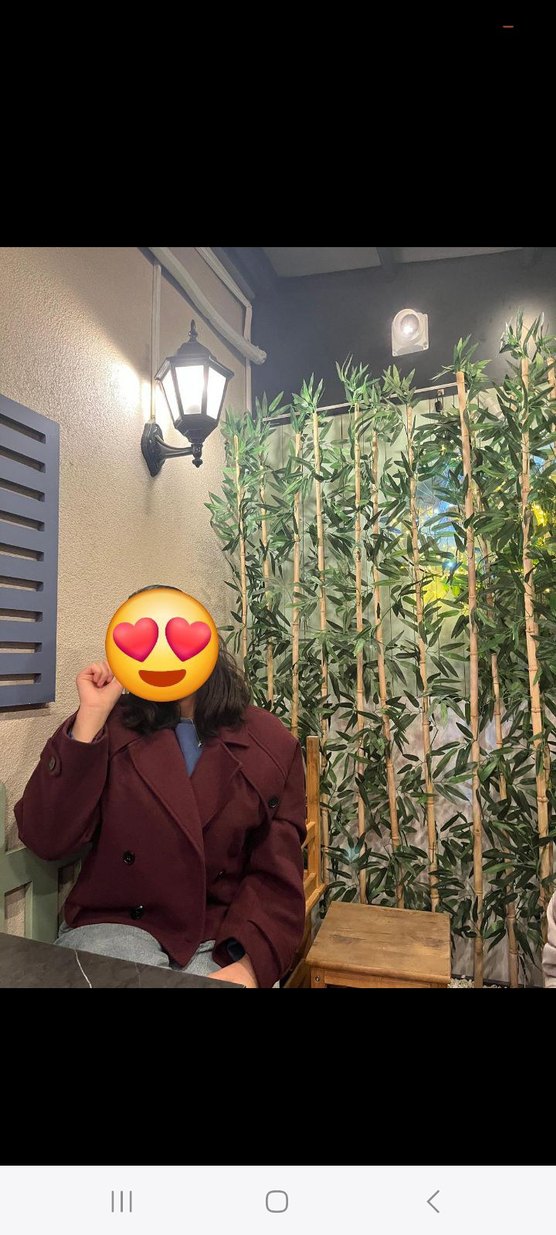 Düğmeli, bordo yün kaban, notched lapel yakalı ve bol kesim. Uzun kollu ve baskılı desene sahip, bohem tarz için uygun, romantik geceler için ideal. 1 kere giydim.çok güzel ve sıcak tutan bir ürün.