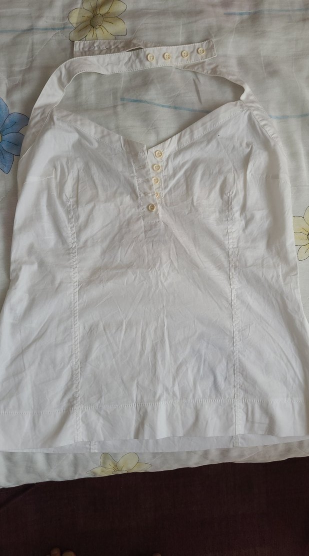 Düğmeli Boyundan Askılı Yaka Kolsuz Beyaz Pamuklu Bluz