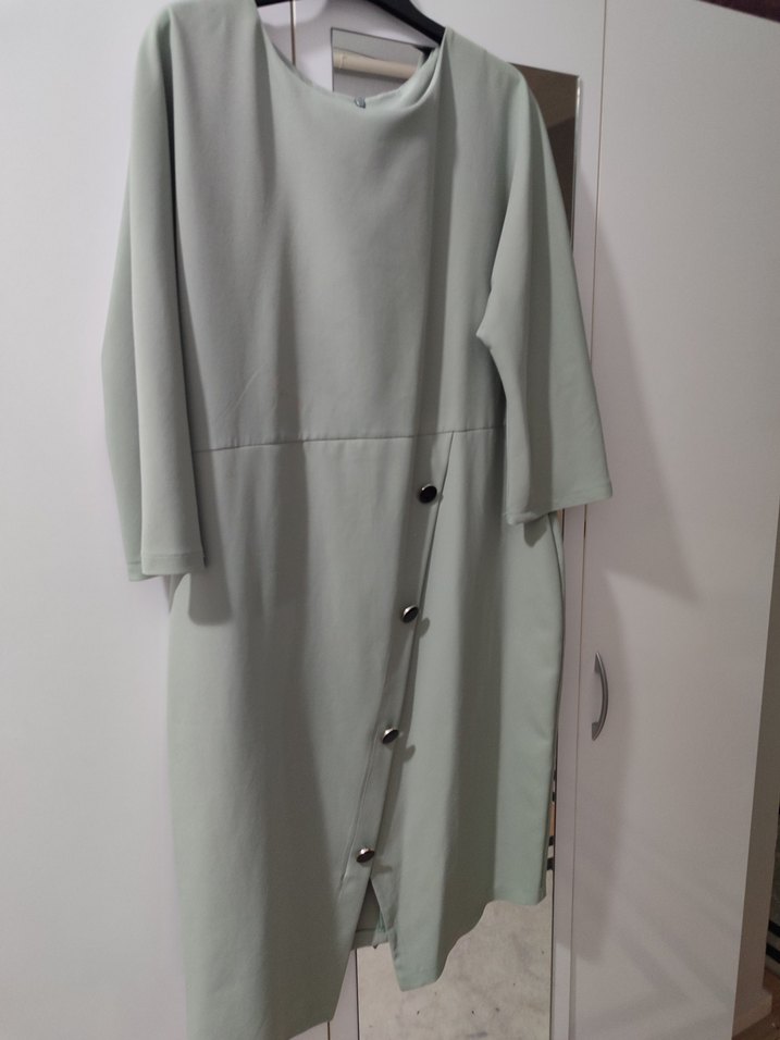 Düğmeli , uzun kollu ve yuvarlak yaka detaylıdır. Rahat kesim ve şık bir elbisedir