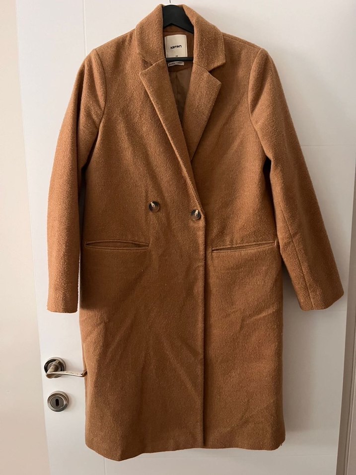 Düğmeli, yaka detaylı camel renk kaban. Uzun kollu ve iki adet ön cepli, yumuşak ve sıcak kumaştan üretilmiştir. Az kullanılmış alındığında alarmını kendim söktüğüm için leke kaldı kol kısmında