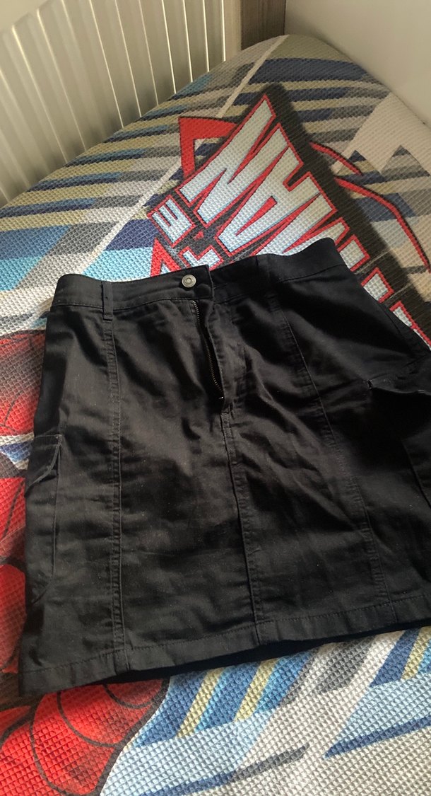 Düğmeli CEPLİ Siyah Mini Etek