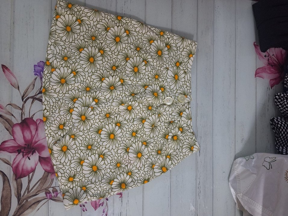 Düğmeli, çiçek desenli ve sentetik kumaştan yapılmış etek 35 cm boy