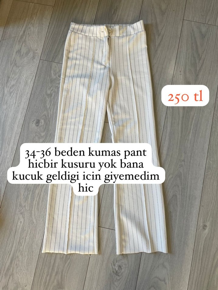 Düğmeli Çizgili Beyaz Gri Kadın Kumaş Pantolon