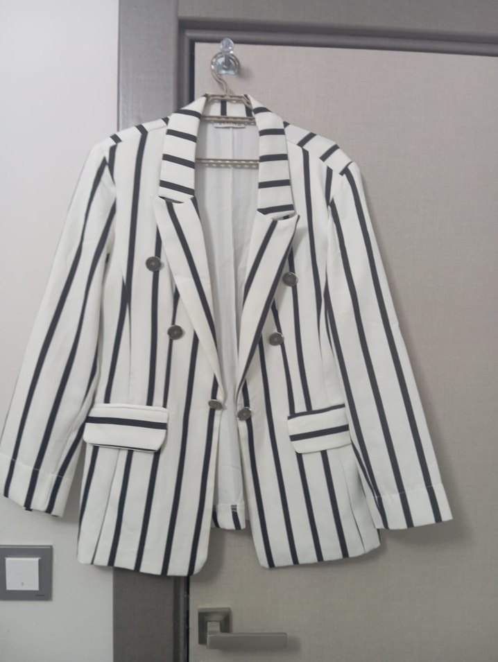 Düğmeli Çizgili Beyaz Kadın Blazer