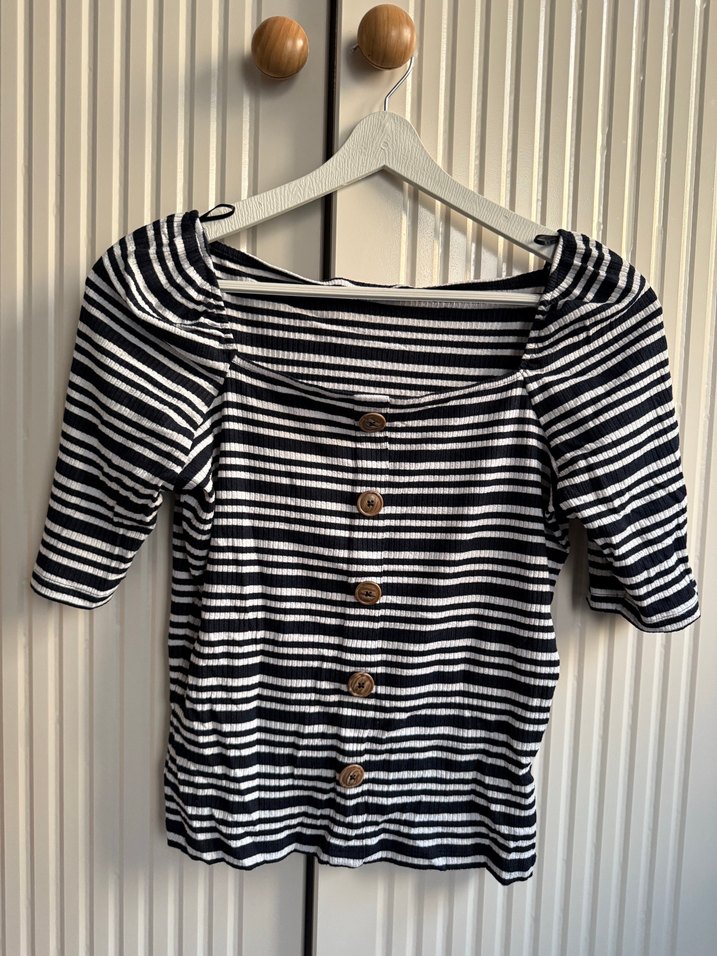 Düğmeli Çizgili Bluz