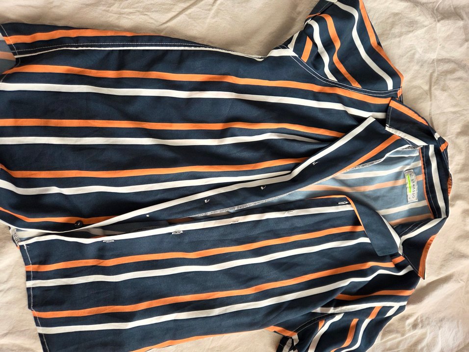 Tiril Tiril Düğmeli, V yakalı ve kısa kollu, çizgili desenli erkek gömlek. Fitted kesim ve koyu renkli çoklu çizgileriyle trend bir gündelik tarz sunar.