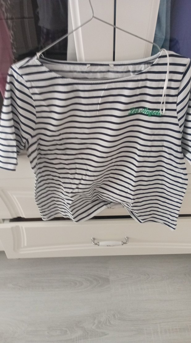 Kadınlar için pamuklu, kısa kollu, kayık yaka ve bol kesim çizgili tişört. Düğme detaylı, beyaz ve gri renklerde, günlük rahat kullanıma uygun.