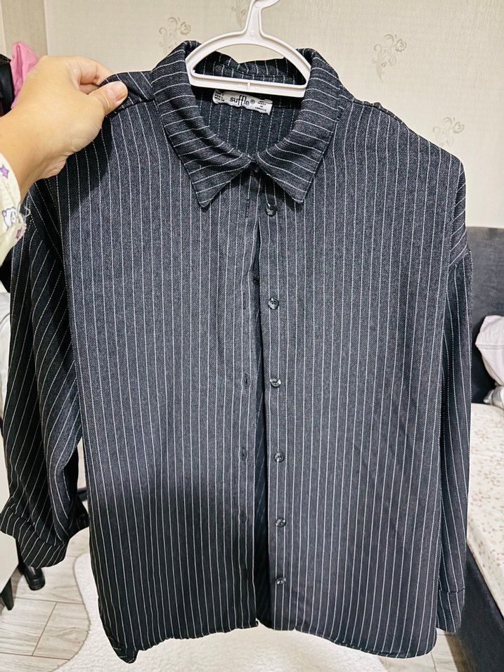 Düğmeli Çizgili Kadın Gömlek