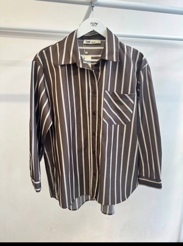 Bu kahverengi çizgili gömlek, uzun kollu, yakalı ve regular fit kesime sahiptir. Yumuşak pamuktan üretilmiş, düğmeli ön ve göğüs cebine sahiptir. Günlük şık sokak stili için uygundur. S m l beden mevcuttur