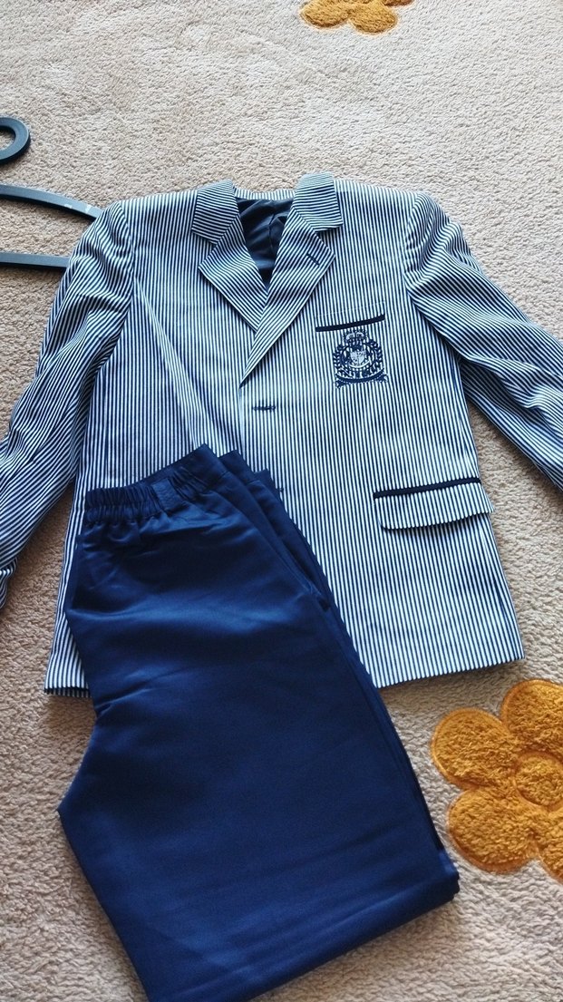 Düğmeli Çizgili Mavi Erkek çocuk Takım Elbise