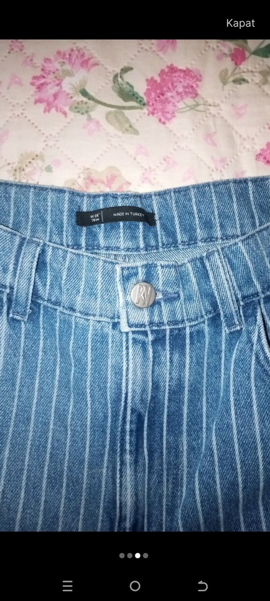 Düğmeli, çizgili mavi denim mini şort, rahat kesim, günlük sokak stiline uygun. Türkiye'de üretilmiştir.