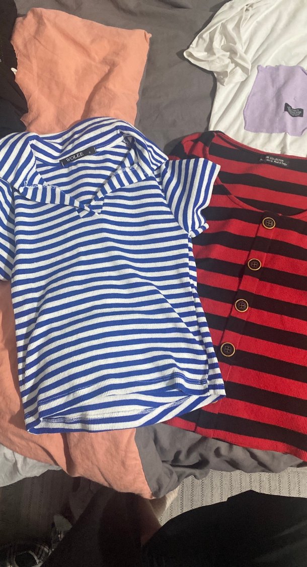 Kısa kollu, düğmeli ve yakalı mavi çizgili hamile tişörtü. Normal midi boyda, rahat ve şık sokak stili için uygun.