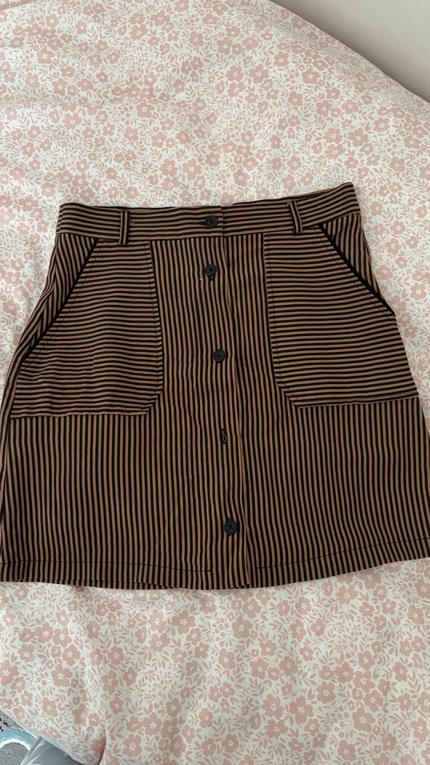 Düğmeli Çizgili Midi Etek