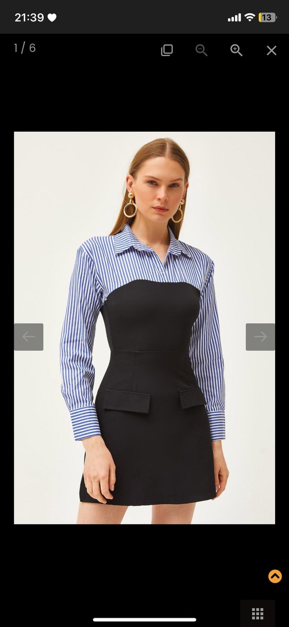 Düğmeli Çizgili Mini Ofis Elbisesi cep detaylı yandan fermuarlı