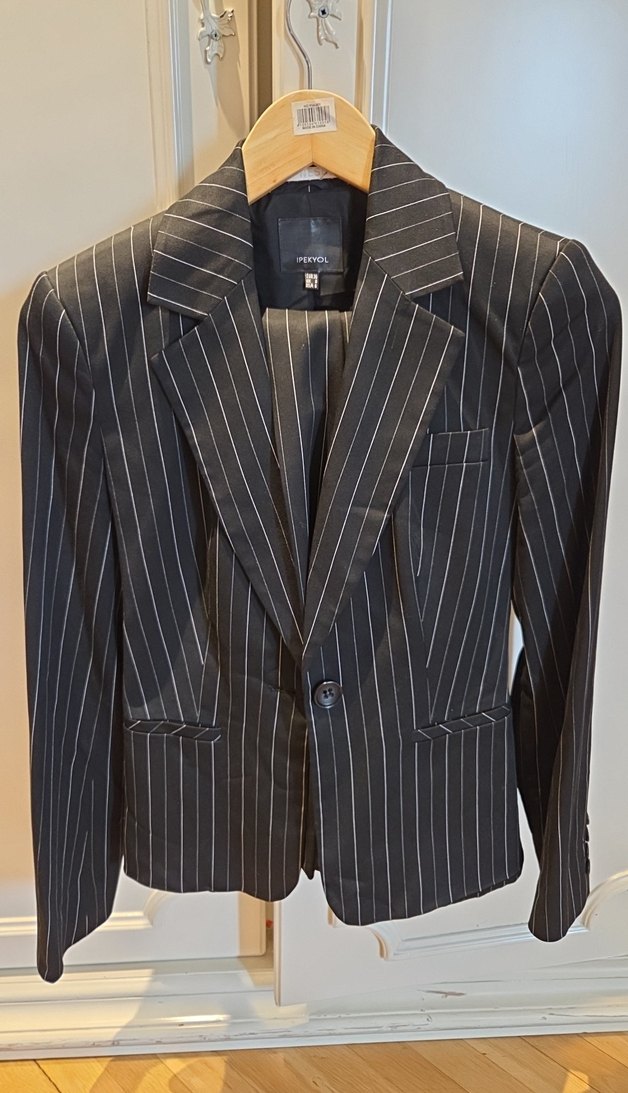 Düğmeli Çizgili Siyah Kadın Blazer pantalon takımı