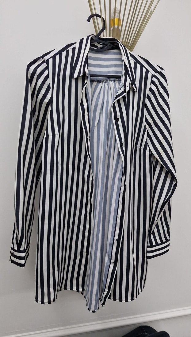 Düğmeli Çizgili Uzun Kollu Gömlek