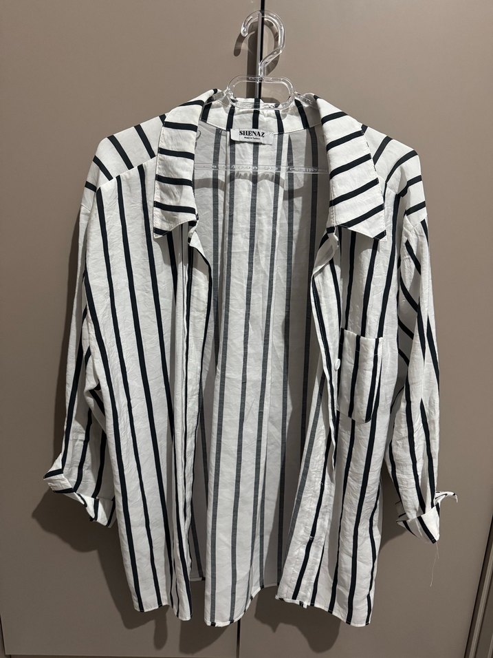 Düğmeli Çizgili Uzun Kollu Kadın Gömlek