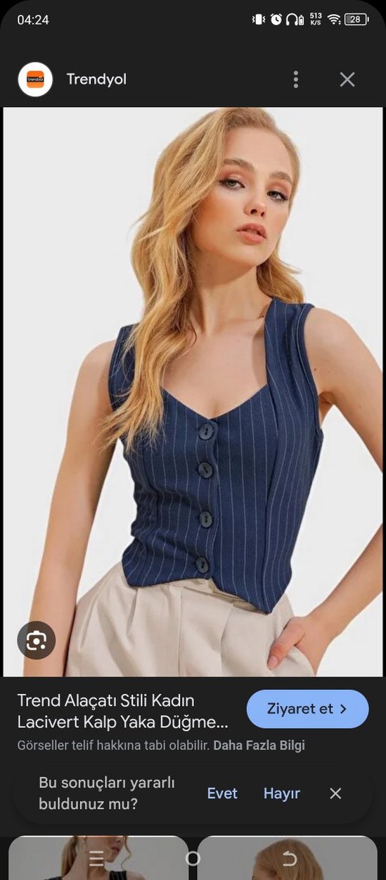 Düğmeli, V yakalı, kısa kesim ve çizgili desenli denim yelek, rahat ve şık sokak stili için uygundur.