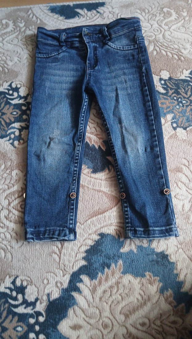 Mavi-gri tonlarda, düğmeli ve bol kesim çocuk kot pantolon,