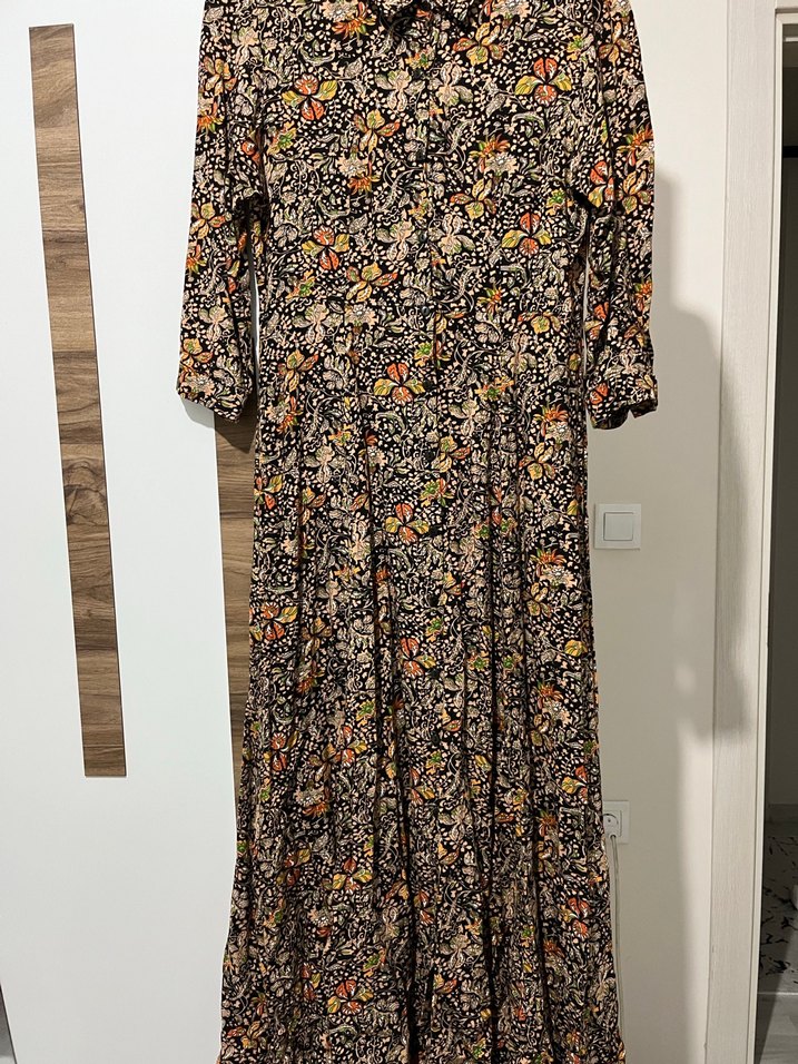 Düğmeli, yakalı ve uzun kollu, bol kesim bohem tarzda çok renkli desenli uzun elbisedir. Günlük kullanım için uygundur.