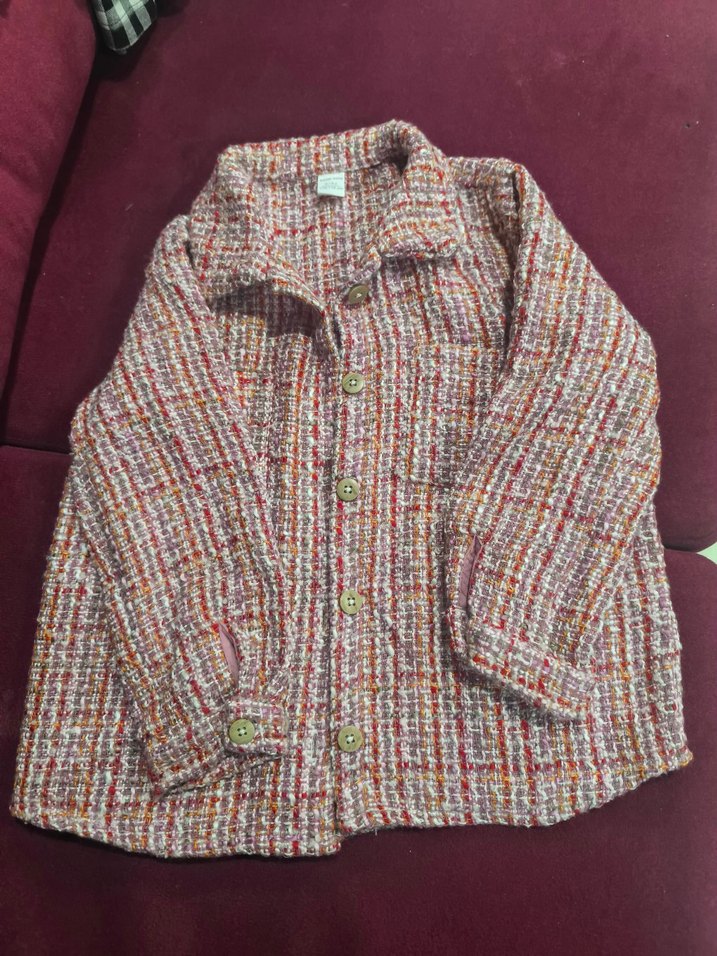 Düğmeli, uzun kollu, çok renkli pastel dokuma kumaştan, notlu yaka ve bol Günlük kullanım için rahat.