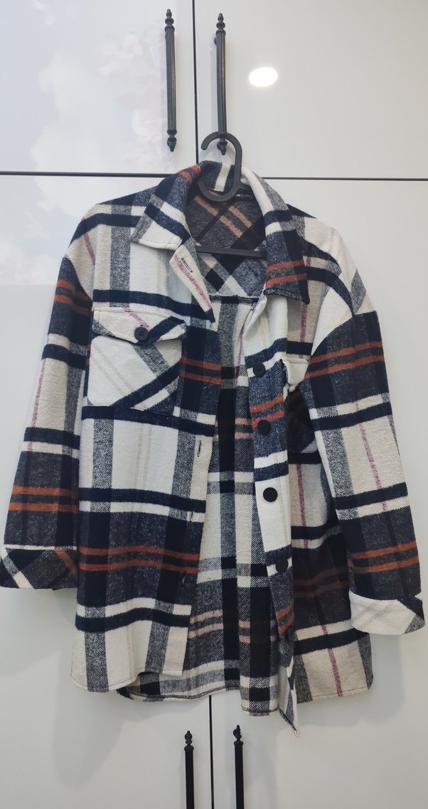 Düğmeli, uzun kollu ve normal boyda bu kadın gömlek, çok renkli ekose desene sahip. Tekstil malzemeden üretilmiş, rahat kesimi ve kesik yaka detayıyla günlük sokak stiline uygun.